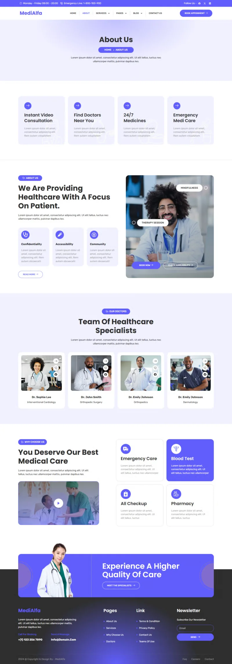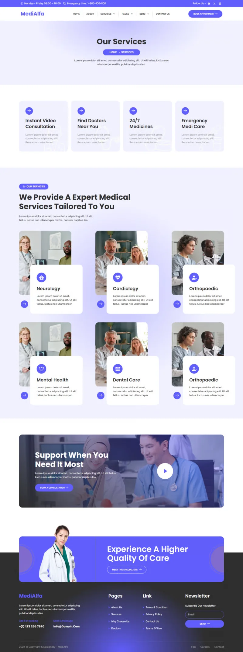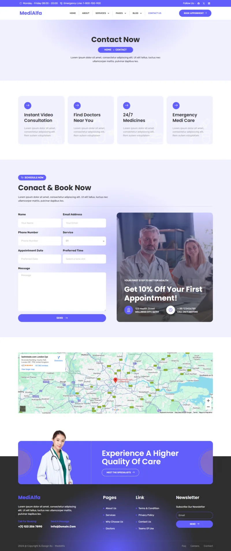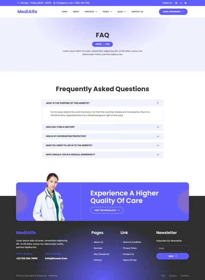 MediAlfa es un diseño pensado especialmente para profesionales de la salud, clínicas, hospitales y centros de bienestar. Su estilo limpio y profesional te ayuda a crear una presencia en línea confiable y cercana para conectar mejor con tus pacientes o clientes.