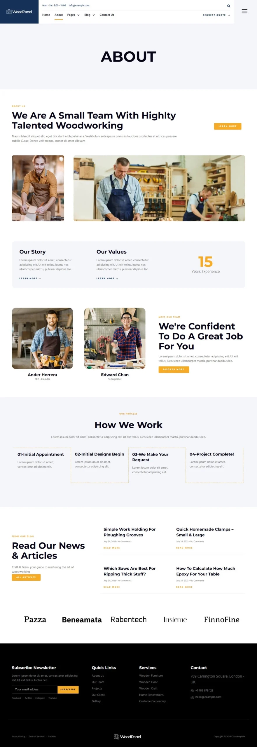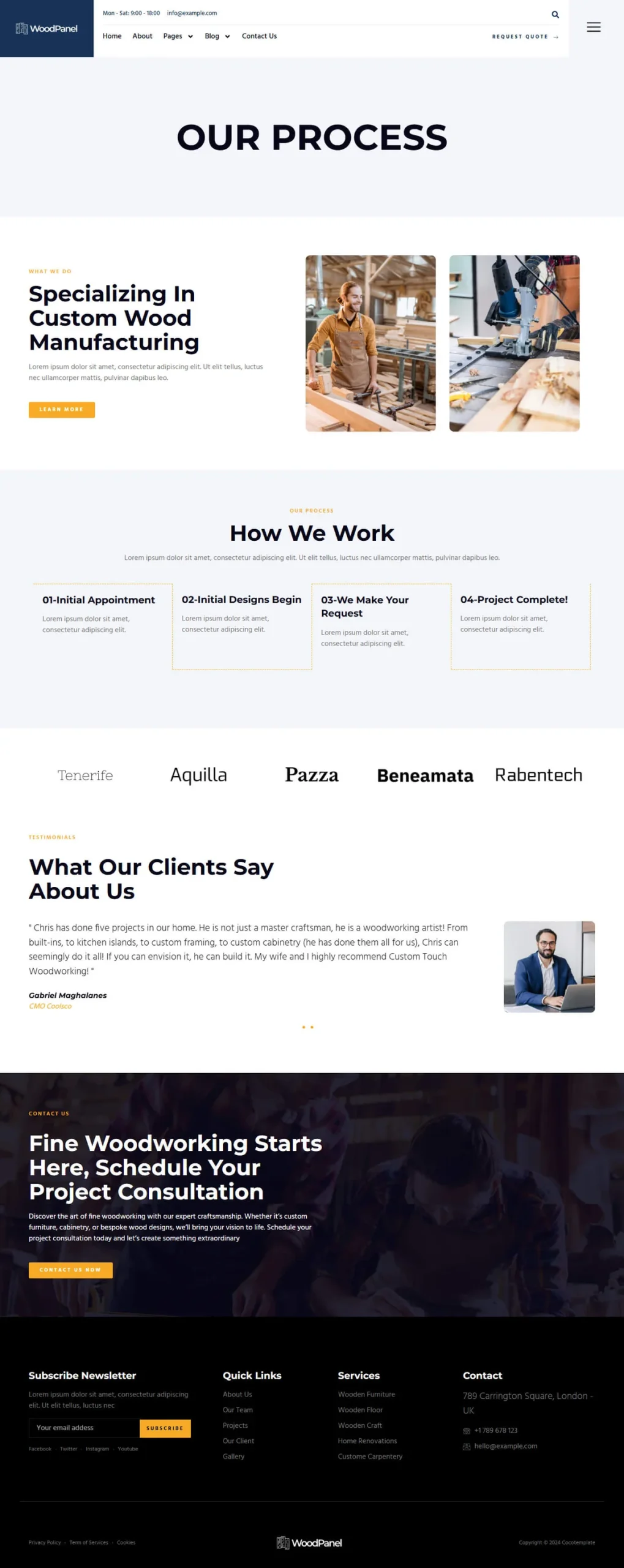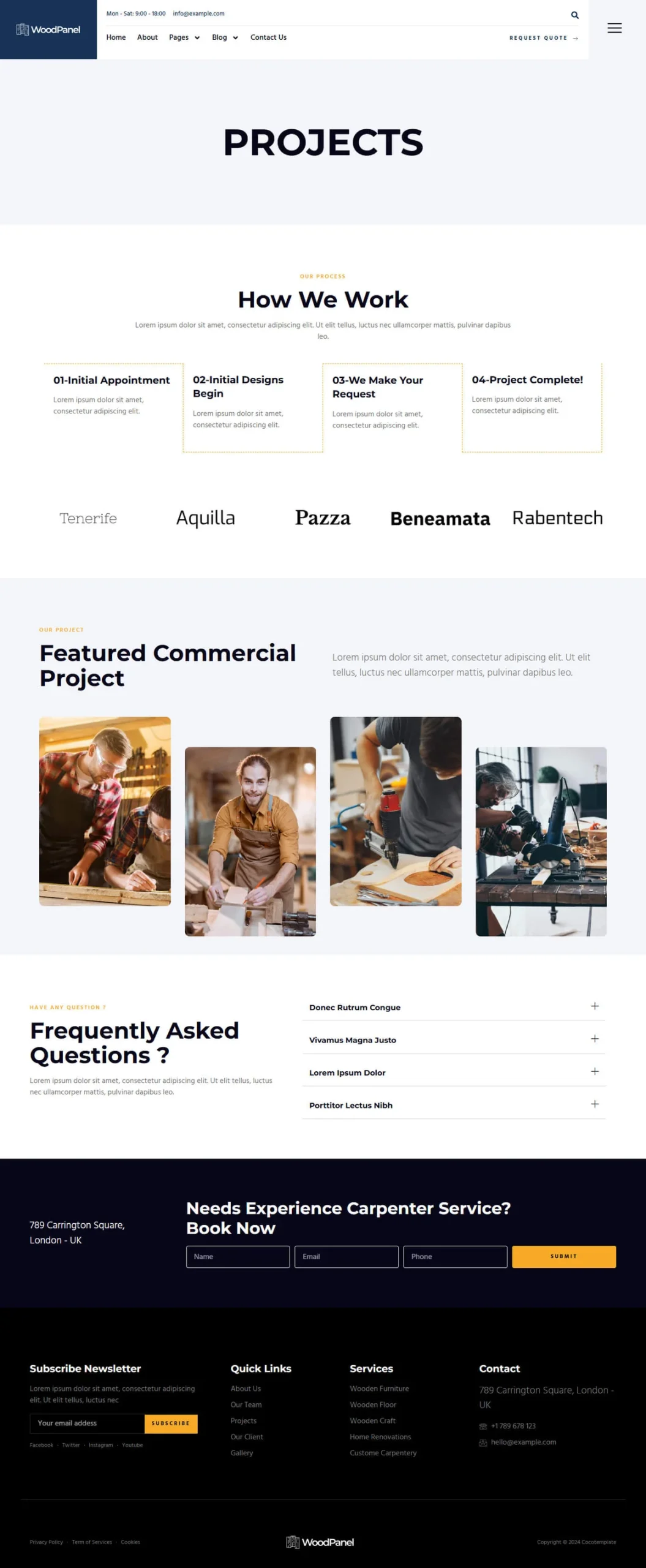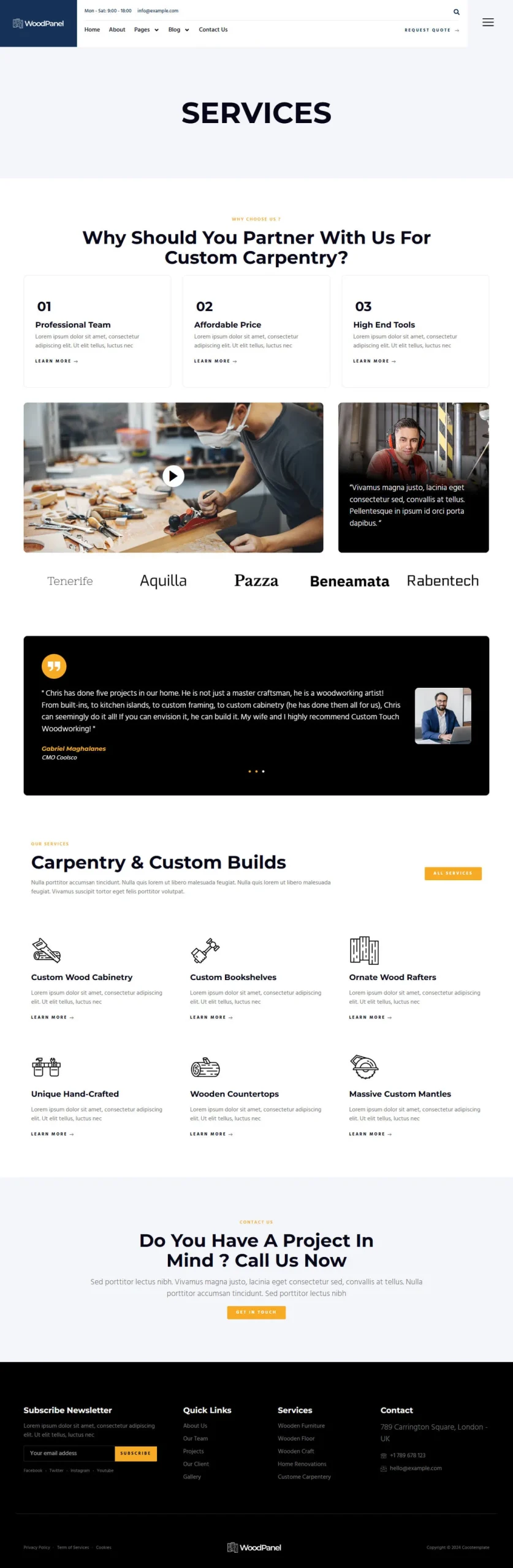 Woodpanel es una propuesta visual especialmente pensada para negocios de carpintería, diseño en madera y oficios relacionados. Ideal para mostrar servicios como reparación de muebles, fabricación a medida, trabajos artesanales, mantenimiento o construcción. Su estilo profesional y ordenado te permite presentar tu experiencia y atraer nuevos clientes de forma clara y atractiva.